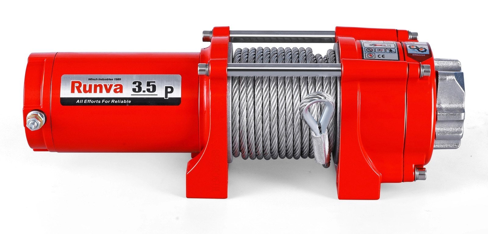 Runva 3.5P Winch with Steel Cable, Limited Lifetime Warranty. The Runva 3.5P Winch is a small and compact winch ideal for ATV / Trailers. It is wireless remote compatible. This product comes with a steel cable and you have the option of either 12V or 24V.