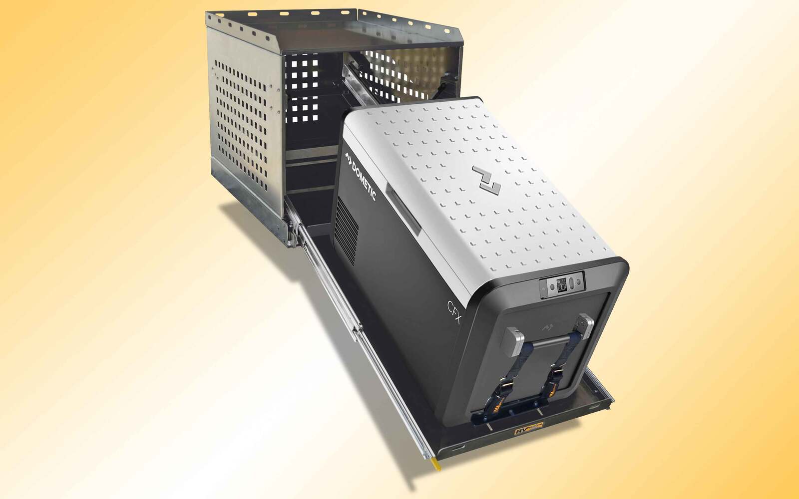 RV Storage Solutions universal Fridge Slide to suit Portable Fridges: up to 50L; Waeco, En