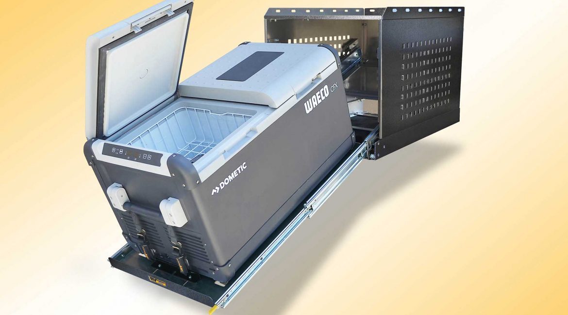RV Storage Solutions universal Fridge Slide to suit Portable Fridges: up to 50L; Waeco, En