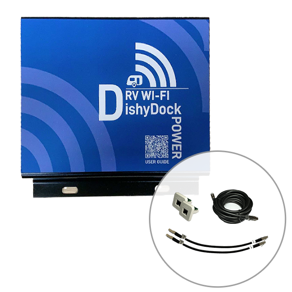 - DishyDock Ethernet cables. Shielded AWG23, fire resistant ethernet cables provide power directly from DishyDock Power to Dishy. We offer a 3, 5, 10 or 15m cable in our kit for in wall installation, so you can place your Dishy Power and Router anywhere in your RV. Neatly tucked away and quietly delivering excellent connectivity. The Packs comes with one 0.3m Ethernet Cable to connect from DishyDock inside your RV to DishyDock power. A second 0.3m Ethernet Cable, then connects DishyDock Router. One system perfectly linked with everything you need.