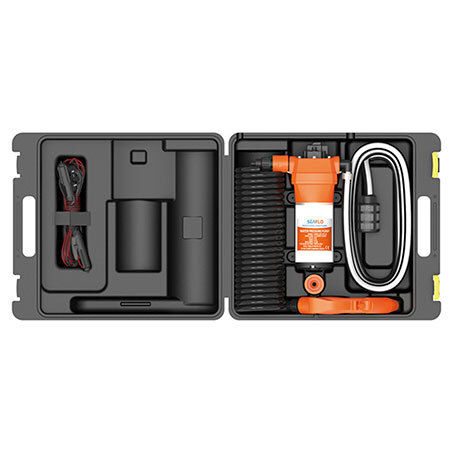 Seaflo Portable Wash Down Pump Kit, 2 year warranty. A powerful 12V wash down kit with a 70 PSI pump. Includes fittings, hose and nozzle. Perfect for the back of you 4WD, boat or tradie's ute.