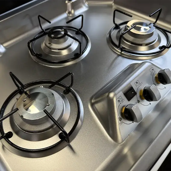 - 3 Gas Burners – One 1.6 MJ/h burner and Two 4.15 MJ/h burners