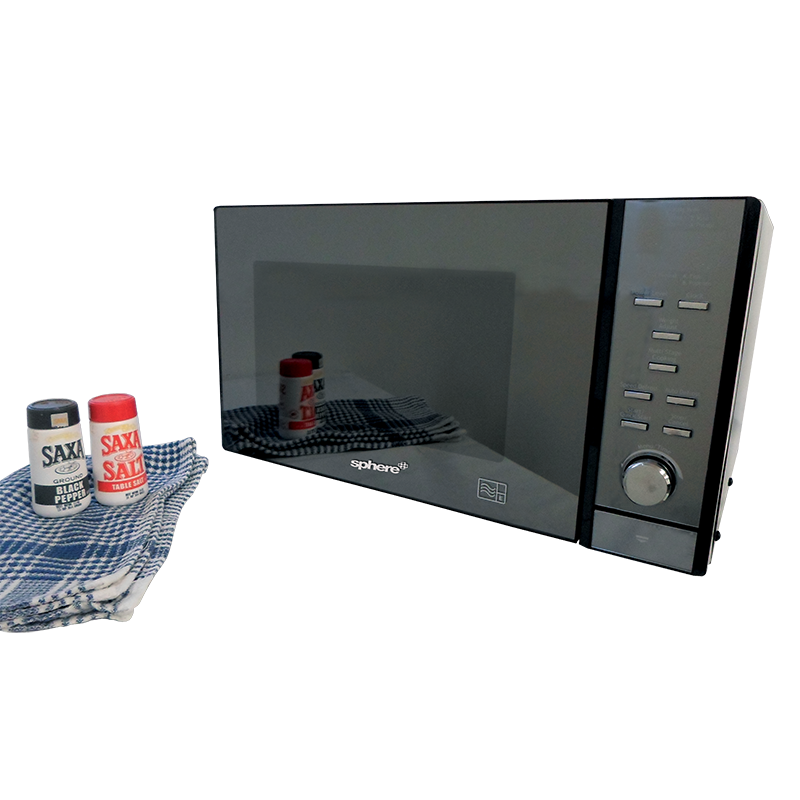 Sphere Caravan 25L Microwave With Mirror Finish.P90D25EP-H3, 1 Year Warranty. Add convenience to your RV with the SphereTM microwave oven, which now features a mesmerising mirror finish. With a large 25L oven capacity and five power level settings, it allows you to prepare a meal in no time! A digital control panel allows you to view and set your usage requirements, as well as display the ever handy clock. Defrosting frozen foods have been made easy as you’re able to select whether you want to use speed or weight as the defrosting basis. It also features one-touch express cooking, a glass turntable (which is dishwasher safe), an end signal and a child safety lock. Aesthetically pleasing, the interior is a crisp white.