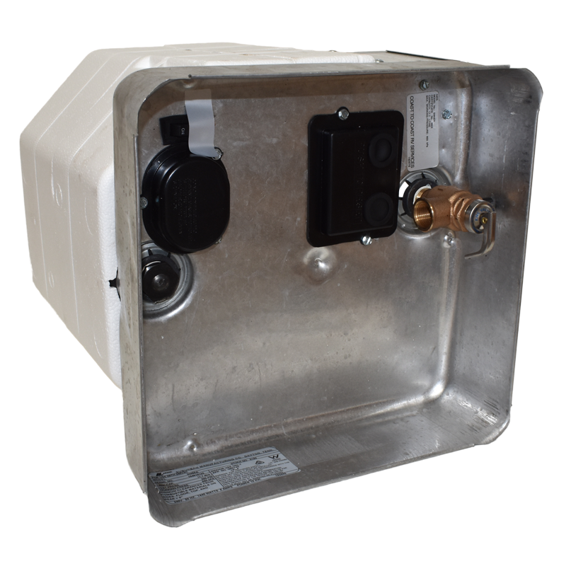 More Convenience. All Suburban water heaters are designed for easy installation, operation and maintenance. The limit switch, reset button and on/off electric element rocker switch are conveniently located in a housing behind the removable outer door. The electric heat element and combination drain plug/anode rod are also located there.