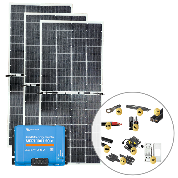 Sunman eArc 3 x 215W Flexible Solar Panel with Victron SmartSolar MPPT 100/50 Charge Controller & Wiring Kit
