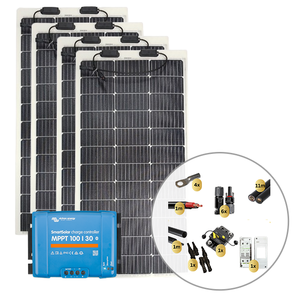 Sunman eArc 4 x 100W Flexible Solar Panel with Victron SmartSolar MPPT 100/30 Charge Controller & Wiring Kit