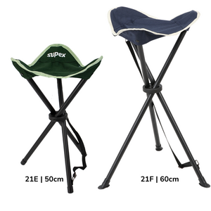 Supex 50cm Tri Leg Stool, 1 Year Warranty. Camping tri-leg stool, ideal for hikers with PVC seat and steel legs. Available in small or large.