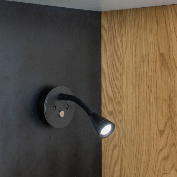 Supex 80mm Caravan USB-C Reading Light, 1 Year Warranty. This interior light has two light modes, a modern finish, a dimmable switch and USB-C. Four light designs to choose from.