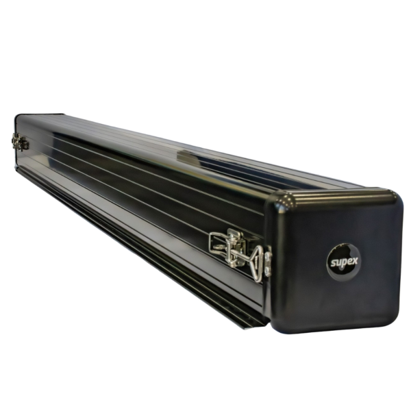 Supex Aluminium Square Pole Carrier 1500mm (L), 1 Year Warranty. The Supex Aluminium Square Pole Carrier is a durable, box-style storage solution for caravans, campers, and vehicles. Ideal for keeping curved roof rafters, anti-flap kits, tent poles, fishing rods, oars and more safe, organised, and secure on the road. Designed for maximum protection and convenience, it features dual-end access and robust aluminium construction — perfect for adventurers who value strength and style in one.