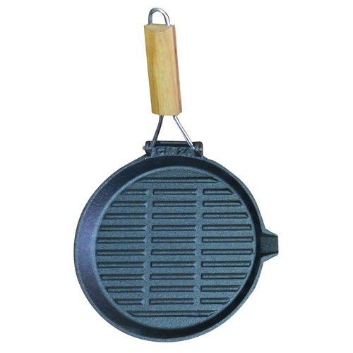 Supex Cast Iron Round Griddle Frypan With Folding Handle, 1 Year Warranty. Cast-iron round griddle pan, pre-seasoned with folding handle. This round, non-stick griddle style base fry pan is the ultimate cookware item for preparing burgers, vegetables, eggs and any other meals or snacks!