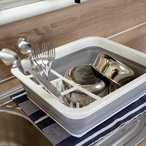 Designed to suit a caravanners life, with an ingenious collapsible design making your RV clutter free, with storage and space-saving made simple! With this contemporary style drainer, you can wash your dishes, leave to drain and get on with your holiday.