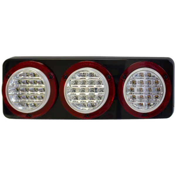 - Features multiple functions: stop, rear position, direction indicator, reverse; as well as reflector functions for safety