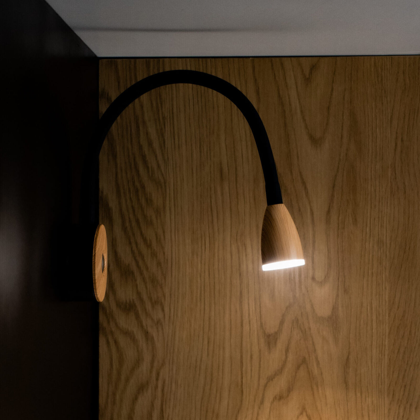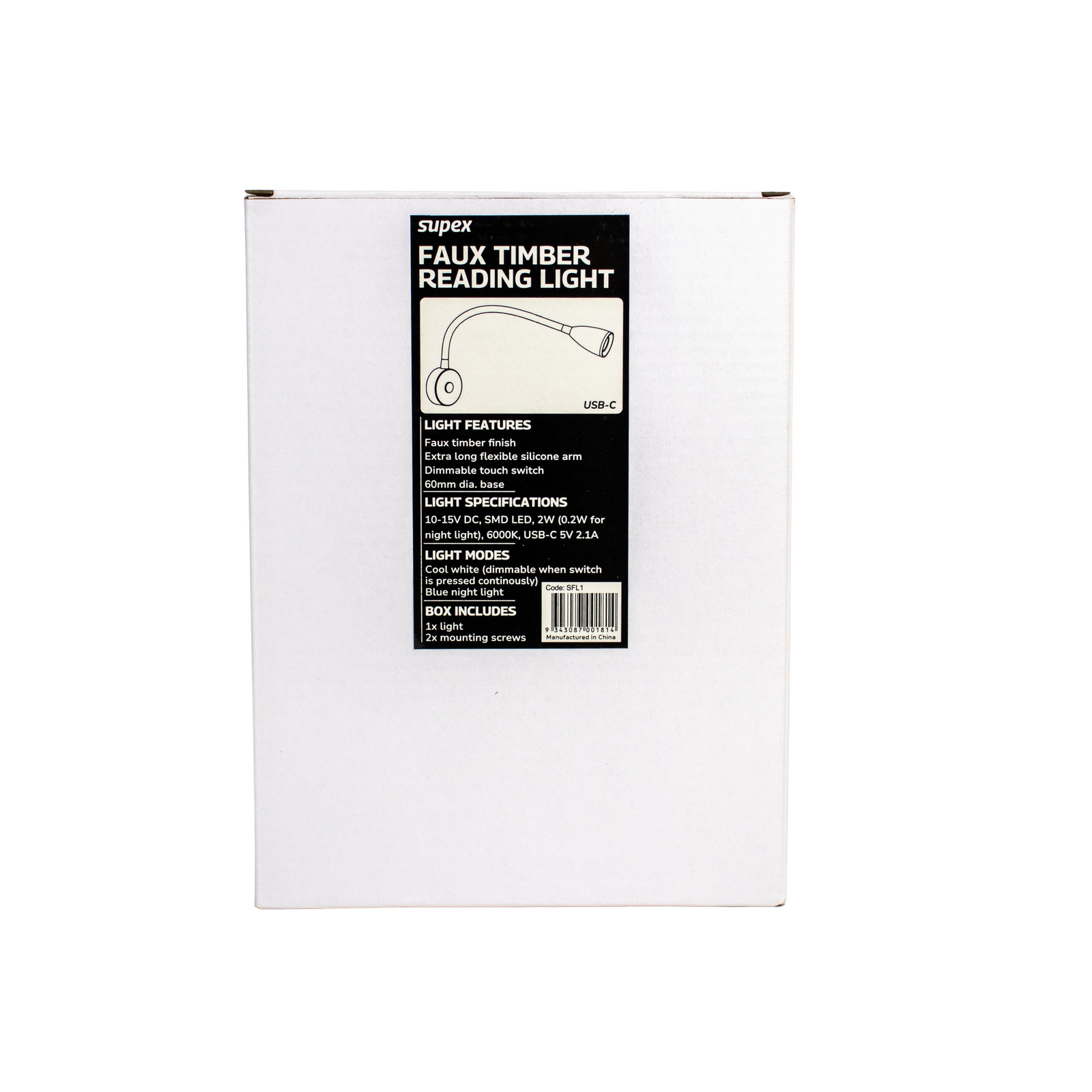 Supex Flexible Arm Reading Light, Timber Finish, 1 Year Warranty. This feature-packed light is a great addition to your van.