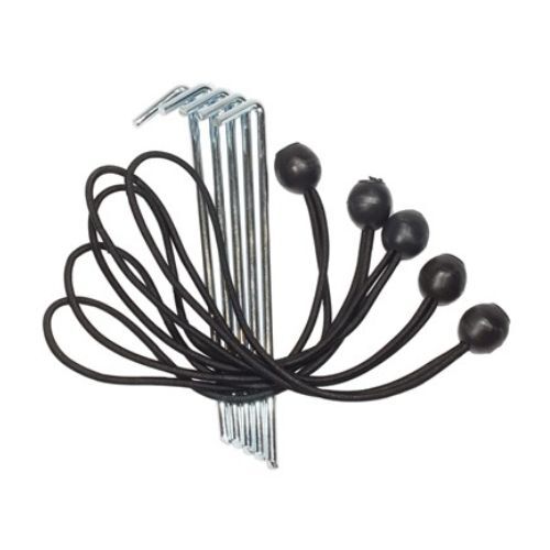 Supex Privacy Screen Tie Down Kit, 1 Year Warranty. Bungee cord and tent peg pack ideal for fastening tent pegs.