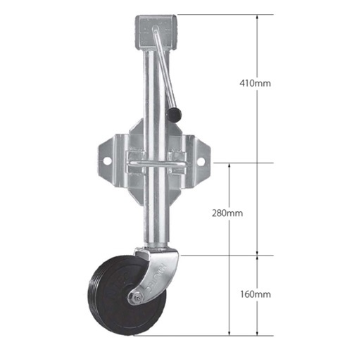 Supex Standard Swivel Jockey Wheel, 1 Year Warranty. Standard side winding jockey wheel for caravans and off-road trailers, with swivel pin.