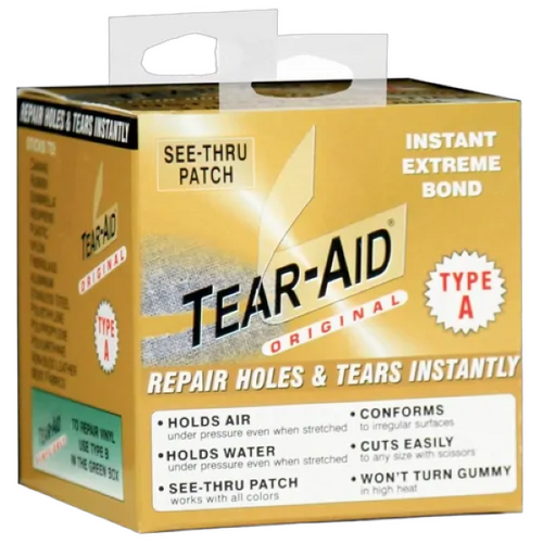 - Due to its high elasticity, Tear-Aid has the unique ability to stretch across the tear when inflatable objects are being re-inflated. This means that the patch never becomes strained or tense which would pose the risk of splitting again.