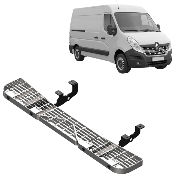 TAG Rear Step and Sensor Brackets for Renault Master (10/2011-on), Limited Lifetime Warranty. Engineered for precision fitment and long-lasting, reliable support to transport and trade fleet vehicles. The TAG vehicle-specific rear step is designed to easily bolt onto the vehicle's existing factory mounting points. Design allows rear step to also bolt onto existing TAG towbars.