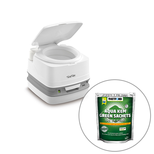 Thetford 345 Porta Potti Portable Toilet, 3 Year Warranty. The Porta Potti 345 fulfils the wishes of the low and mid end of the portable toilet market. The Porta Potti shows added value for the end users by the design, high quality and variation of product features. The position of this toilet is in the lower end of the mobile leisure market, often oriented on a temporarily use and domestic use of the toilet.
