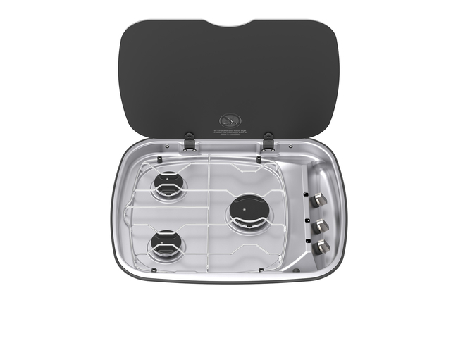 Thetford Argent 3 Burner Hob MK3, 3 year warranty. The Argent hob is a stainless steel hob with detachable pan stands that are easy to clean and enamelled burner lids.