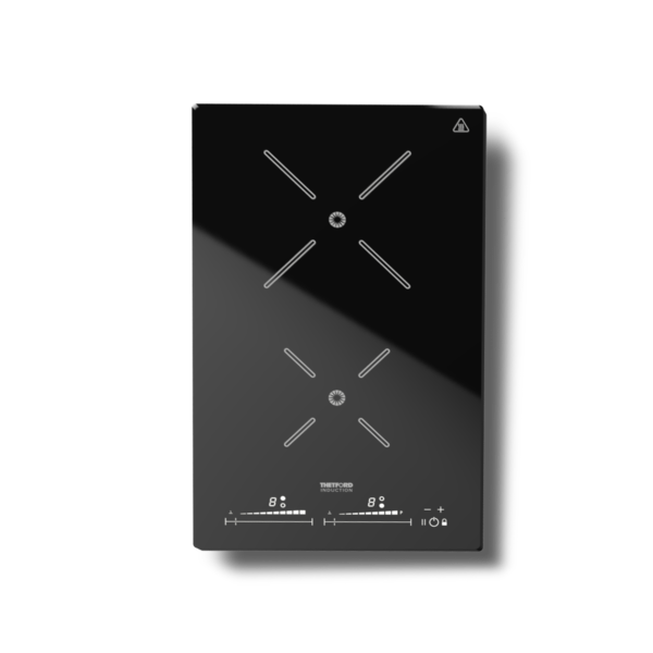 Thetford Domino Induction Hob, 3 Year Warranty. Thetford introduces the new Domino Induction Hob. A fresh take on the classic Thetford 902 induction hob. The new design and new slide controls make it easy to use, and the new interface locking functionality helps to prevent accidental changes. The lower weight and smaller build-in depth make it more convenient to use, and the upgraded functionality makes it even more effective. With its adjustable current setting, you can now fine-tune the amount of power used by your appliances.