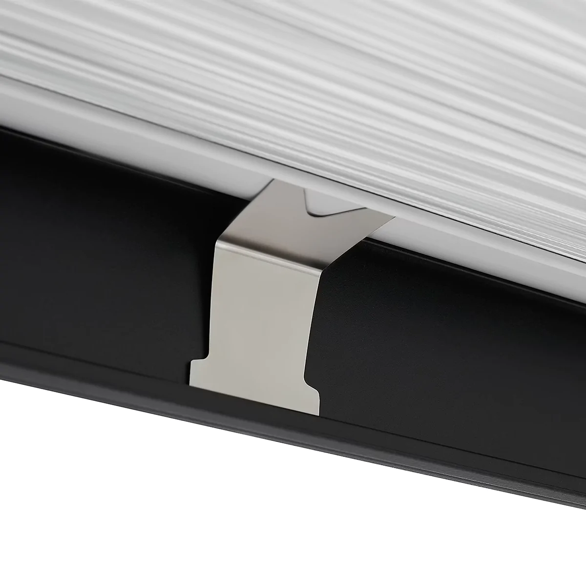 The cassette housing comes in white or anodized aluminum, while the fabric has multiple fade-resistant color options.
