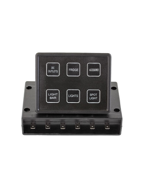 Thunder 12V LED 6 Way Touch Switch, 1 Year Warranty. Powering a range of devices can get confusing. Allow easy access to powering your favourite accessories such as fridges, lighting and all other devices!