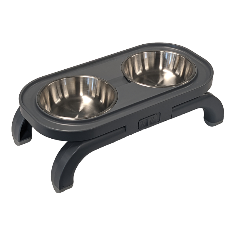 Travellers Twin Pet Bowl - Height Adjustable - Grey