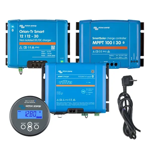 Victron 30A AC-DC & DC-DC Charger, 30A MPPT SmartSolar Charge Controller & Monitor Bundle, 5 Years Warranty.