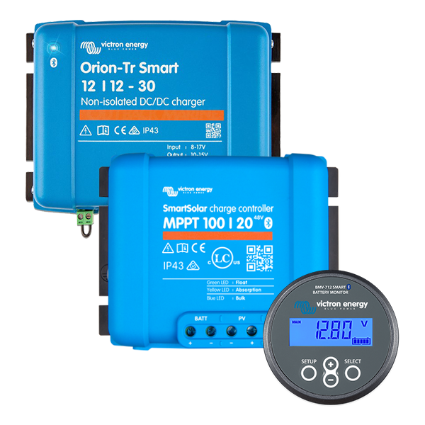 Tap into the full capabilities of your 4WD, Caravan, or Camper Trailer with our comprehensive Victron 30A DC-DC Battery Management System Package. Seamlessly integrate this power management system with your solar panels and batteries to enhance your energy self-reliance. Keep a close watch on your power consumption using the Victron Battery Monitor BMV-712 Smart, fine-tune the conversion of solar energy with the SmartSolar MPPT 100/20 48V Charge Controller, and ensure your auxiliary battery stays charged on the move with the Orion-Tr Smart 12/12-30A Non-isolated DC-DC charger.