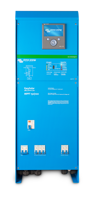Victron Easysolar 12V 1600VA 70amp Inverter Charger, 5 Year Warranty. The EasySolar combines a MPPT Solar Charge Controller, an inverter/charger and AC distribution in one enclosure. The product is easy to install, with a minimum of wiring.