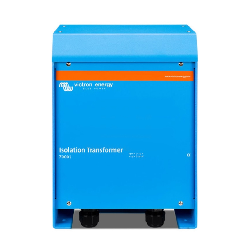 Victron Isolation Transformer 7000W 230V, 5 Year Warranty. Indispensable in professional marine energy systems. It prevents electrolytic corrosion and above all serves as a device to guarantee a safe electric system. Toroidal wound technology for quietness and high efficiency. Soft start circuitry will ensure that the shore circuit breaker will not trip when plugged in.Â