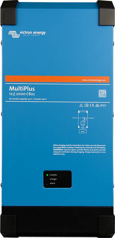 The MultiPlus, as the name suggests, is a combined inverter and charger in one elegant package. Its many features include a true sine wave inverter, adaptive charging, hybrid PowerAssist technology, plus multiple system integration features.