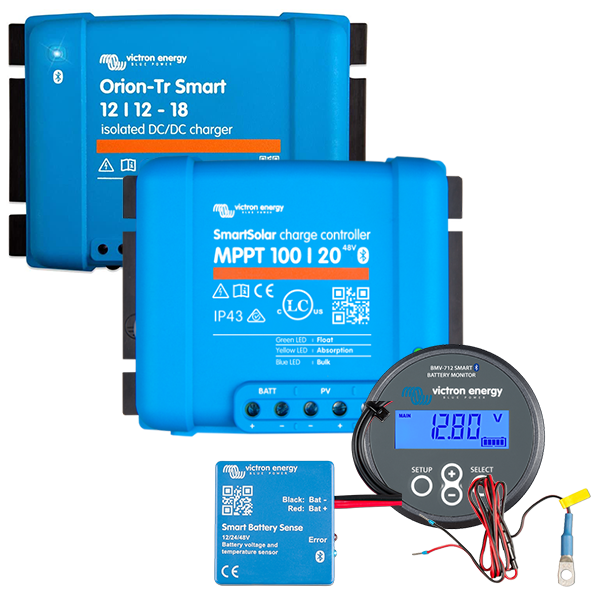 Victron SmartSolar Bundle with Orion-Tr Smart 12/12-18A DC-DC Charger, SmartSolar MPPT 100/20 Charge Controller & BMV-712 Smart Battery Monitor, 5 Year Warranty.