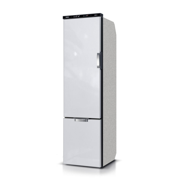 Vitrifrigo Slim 140 Litre 12/24V Grey Fridge Freezer with Chromelock, 2 Year Warranty. The SLIM150 CHR model is an outstanding fridge-freezer from the CHR series, designed for the overland world. Weighing 36 kg, it offers a total capacity of 140 liters, divided between two compartments; the upper one with front-opening and the lower one with drawer opening.
