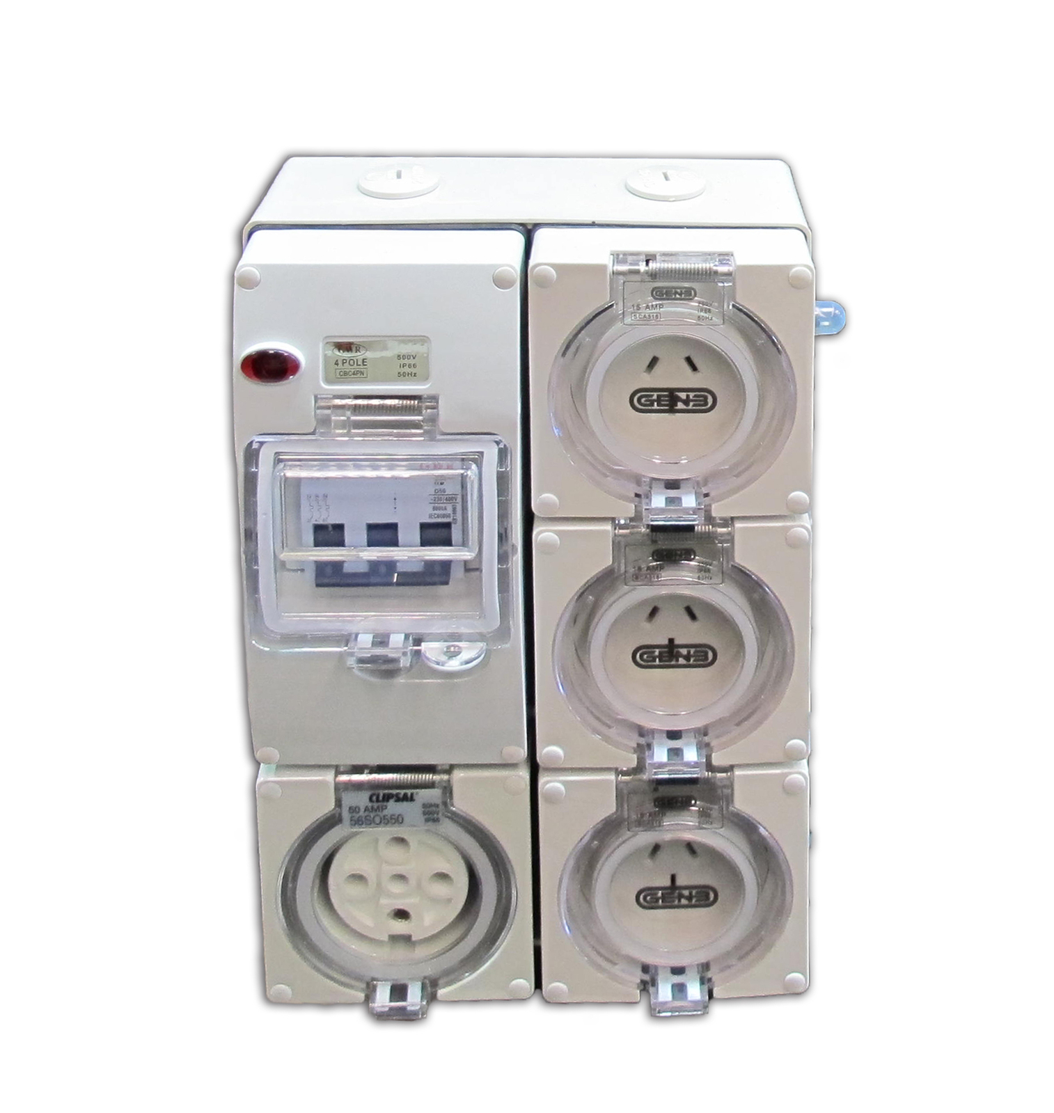 1 x three phase and 3x single phase weatherproof socket outlets with circuit breaker protection.