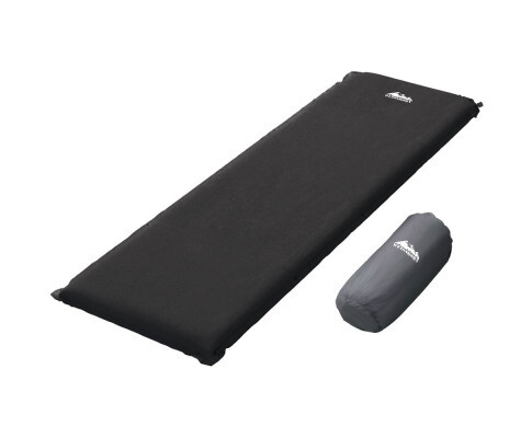 Weisshorn 9.5cm Single Black Self Inflating Air Mattress, 1 Year Warranty. Looking for a comfortable night's sleep while camping? Look no further than the Weisshorn Self-Inflating Mat. With its efficient self-inflating valves, the mat can quickly inflate in 60 seconds. The suede surface is soft to the touch and is durable and water-resistant, making it easy to clean and maintain no matter the surface. Stuffed with 9.5cm thick polyurethane foam, the mat is comfortable to sit and lie on during your trip. When you're finished, simply roll up your mat and put it in the provided carry bag for easy transportation and storage. Ideal for camping all year round, you'll love the convenience of the Weisshorn Self-Inflating Mat. Get yours today in preparation for the camping season.
