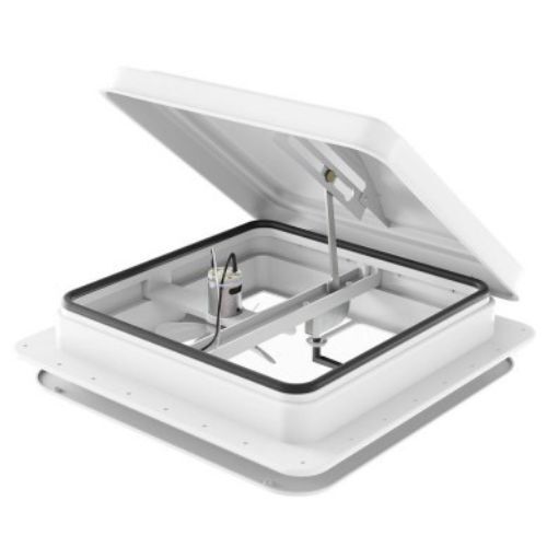 Maxxfan Deluxe with Rain Dome,T/Stat, Power Lift and Remote .356mm x 356mm WHT.00-07000KIA