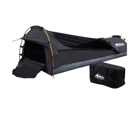 Weisshorn Dark Grey Single Biker Swag, 1 Year Warranty. Camping and enjoying the great outdoors is no fun when your tent isn’t holding up the way it should be. Think of those nights when it is just too hot, too wet, or too cold. When the creepy crawlies and flying insects have made themselves at home in your shelter. That is why you need our ever-reliable and versatile Weisshorn Single Biker Swag.