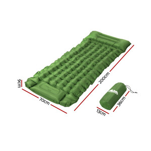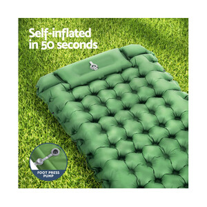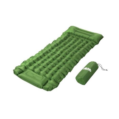 Weisshorn Green Single Self Inflating Camping Mattress, 1 Year Warranty. Looking for a comfortable night's sleep while camping? Look no further than the Weisshorn Self-inflating Mat. With its efficient self-inflating valves, the mat can quickly inflate in 50 seconds. The TPU coating surface is durable and water-resistant, making it easy to clean and maintain no matter the surface. The 9cm thick mat with pillow is comfortable to sit and lie on during your trip. When you're finished, simply roll up your mat and put it in the provided carry bag for easy transportation and storage. Ideal for camping all year round, you'll love the convenience of the Weisshorn Self-inflating Mat. Get yours today in preparation for the camping season.
