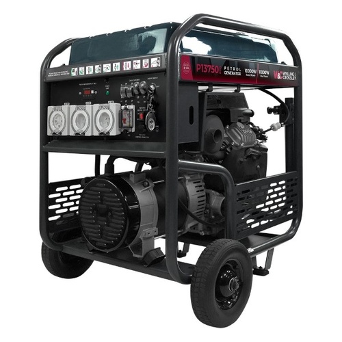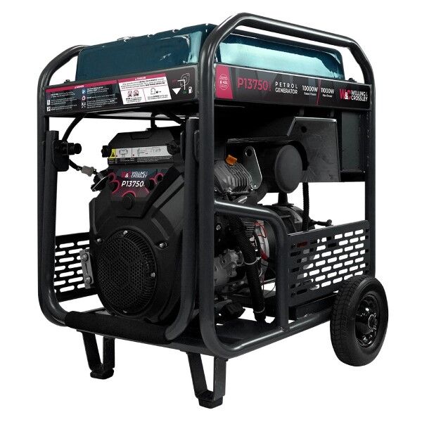 Welling & Crossley 13.75 kVA Open Frame AVR Petrol Generator E-Start & RCD, 2 Years Warranty. The Welling and Crossley P13750RCD is a powerful 10,000W open-frame AVR (Automatic Voltage Regulated) petrol generator equipped with a convenient electric start and RCD (Residual Current Device) for protection against electrical faults. The WC-P13750RCD has a generous 45L fuel tank and an economical motor, providing reliable, clean, and consistent power for running multiple appliances over extended periods. The WC-13750RCD is the workhorse you need when you’re on the job