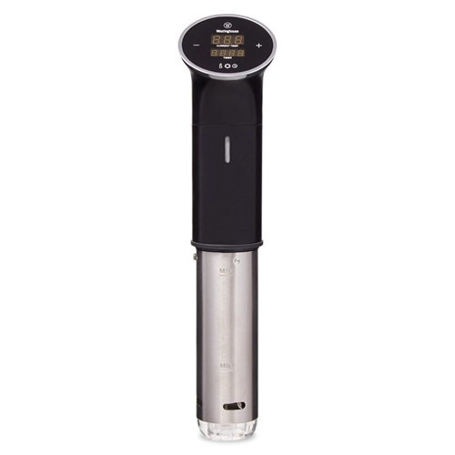 Westinghouse 1200W Digital Sous Vide, 1 Year Warranty. The Westinghouse Sous Vide 1200W Digital offers precision temperature control with its 25-95 degree range, countdown timer up to 99 hours, and stainless steel heating coil. The intuitive interface and waterproof IPX7 rating make it easy to use and durable. A convenient Pot Clip also prevents splashing and spills. Get the perfect meal every time with the Westinghouse Sous Vide.