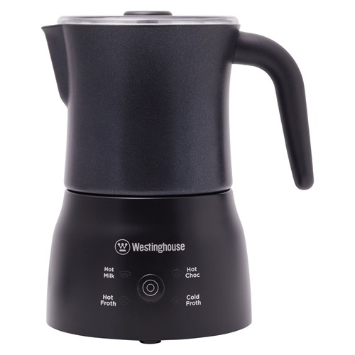 Westinghouse 250ml Black Milk Frother, 1 Year Warranty. With the easy-to-use and fully automatic Milk Frother from Westinghouse, you can make rich, creamy and perfectly frothed milk for all of your favourite coffee beverages. Cleaning is made easy with the detachable, dishwasher-safe and non-stick coated aluminium jug. This Milk Frother is also equipped with a powerful motor, enabling it to froth milk quickly and efficiently.