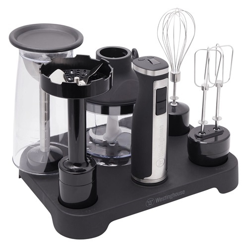 Westinghouse 300W Speed Control Stick Mixer, 1 Year Warranty. Introducing the Westinghouse 300W Stick Mixer Stainless Steel – your versatile kitchen companion designed to simplify meal preparation. This sleek and powerful stick mixer comes equipped with an array of essential attachments, including a blender for smoothies and soups, a masher for creamy potatoes, a chopper for effortless chopping, a whisk for perfect batters, beaters for light and fluffy desserts, and an 800ml beaker for mixing and measuring convenience. This 300W powerhouse is not only stylish but also built to last, making it the ultimate tool for blending, chopping, and whisking your way to culinary perfection. Elevate your cooking game with the Westinghouse Stick Mixer – the culinary innovation you've been waiting for.