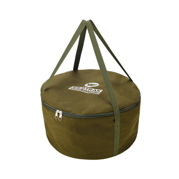 Wildtrak 12Qt Canvas Camp Oven Bag, 1 Year Warranty. Keep your cast iron camp oven protected and clean from dust and dirt using a heavy duty canvas carry bag.