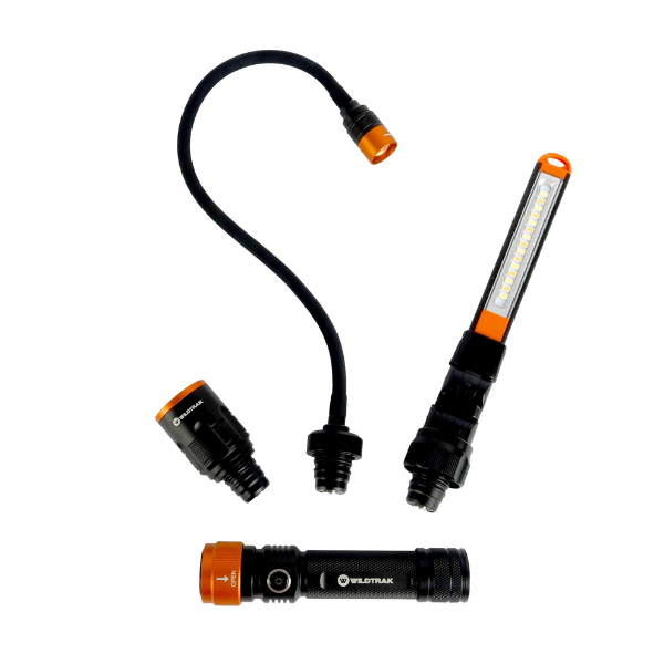 - 3 Interchangeable Heads: Flashlight, Worklight, and Flexible Gooseneck Head