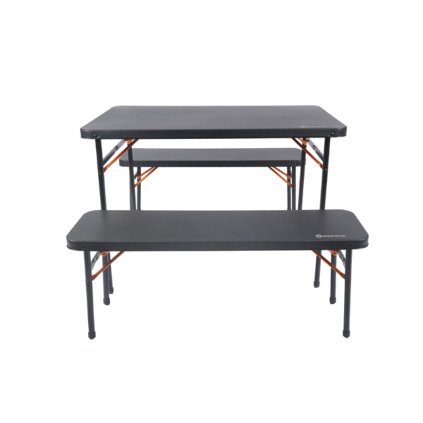 Wildtrak Picnic Table and Bench Set 102cm, 1 Year Warranty. A versatile and convenient picnic table set designed to bring families and friends together for memorable moments. Measuring 102cm x 61cm, this 3-piece set promises unparalleled functionality, stability, and convenience, making it the perfect companion for picnics, camping trips, and any outdoor occasion where shared experiences are cherished.