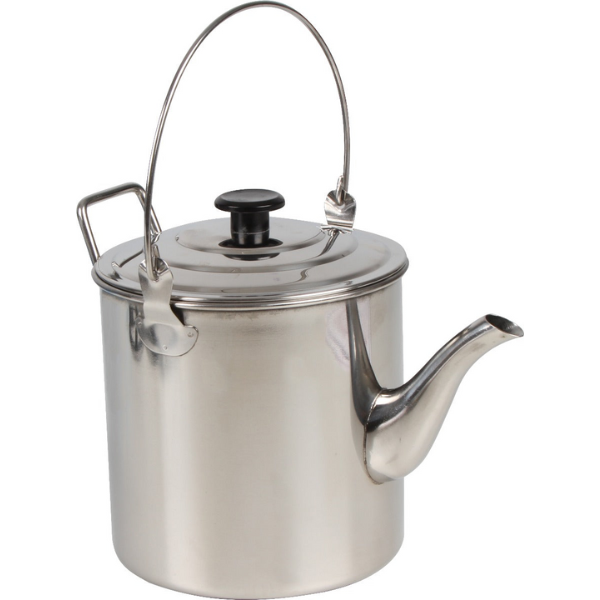Wildtrak Stainless Steel Billy Teapot 1.8L, 1 Year Warranty. A great addition to your camp kitchen arsenal. Suitable for the campfire or camp stove.