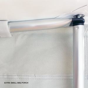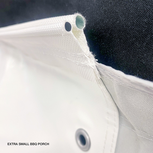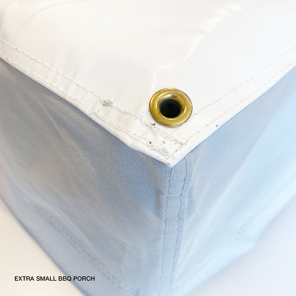 - The Extra Small BBQ Porch canopy is made with heavy-duty UV-Stabilised white PVC with a light grey valance