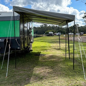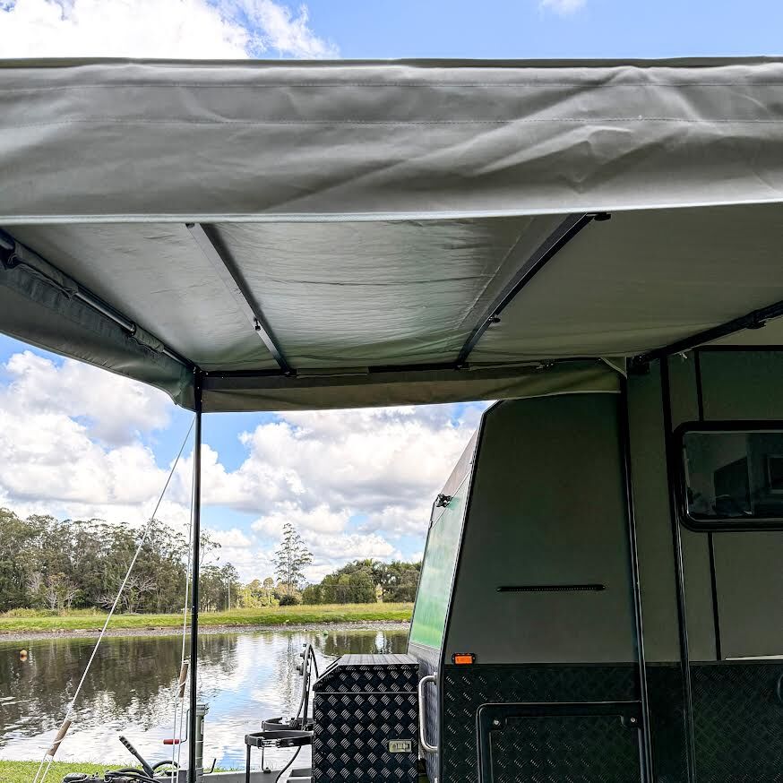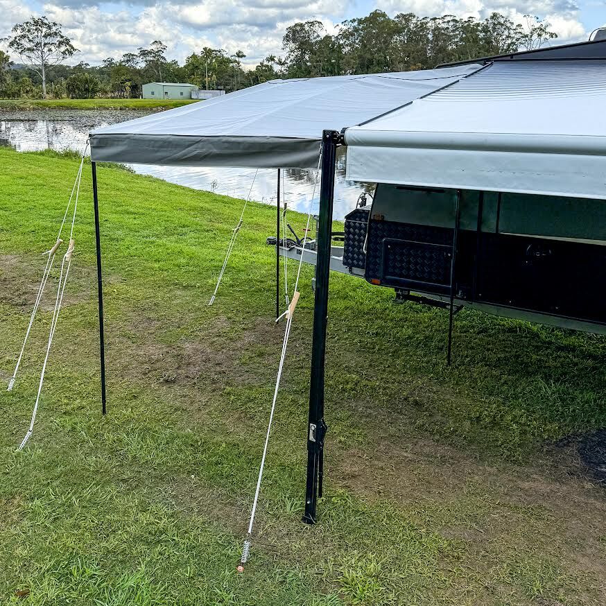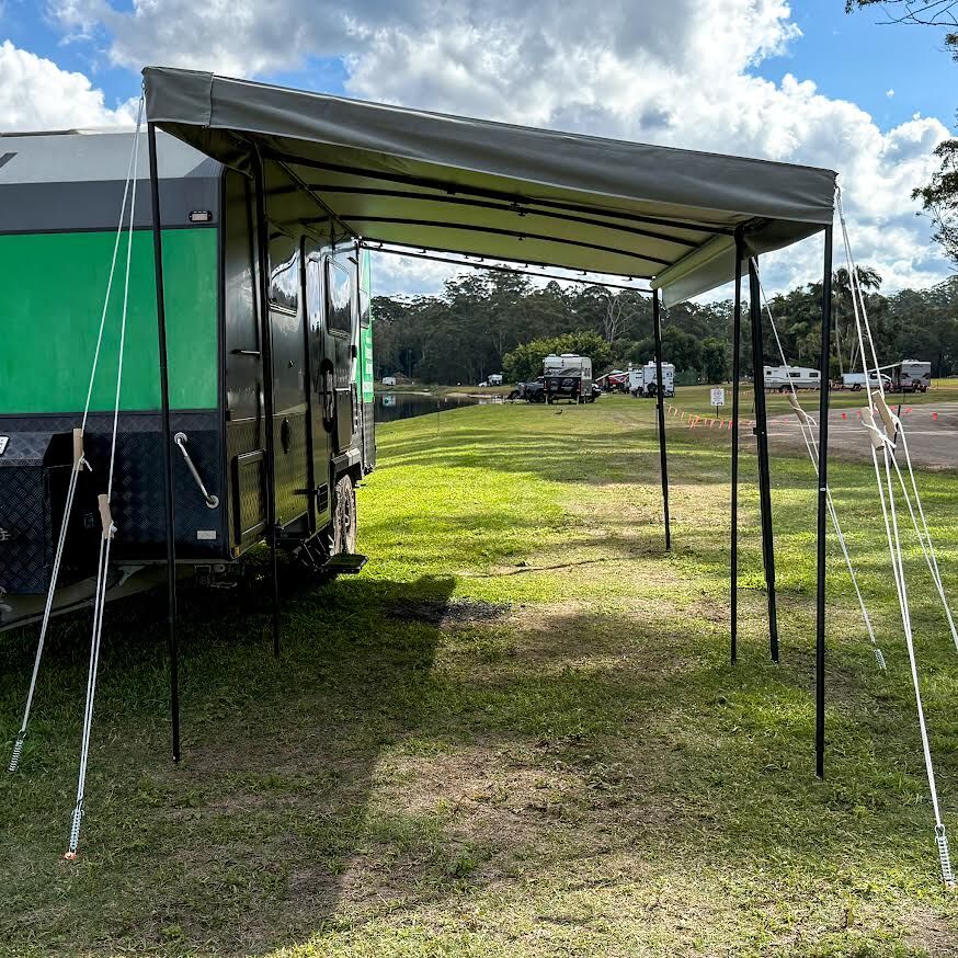 Designed to suit most standard roll-out or cassette awnings, this one-size-fits-most model offers flexibility without compromising on strength or performance. Fully reversible, it can be attached to the front or rear of the awning depending on your layout. The BBQ Porch Plus is simple to install by sliding into the sail track of your Anti-Flap Kit. Packing up camp takes no time in the world with the included storage bags for both canopy and poles to keep everything tidy, compact and protected when not in use. Whether you’re touring the coast, setting up at a bush camp, or parked at a caravan park, the BBQ Porch Plus helps you make the most of your outdoor area — rain, sun or wind.