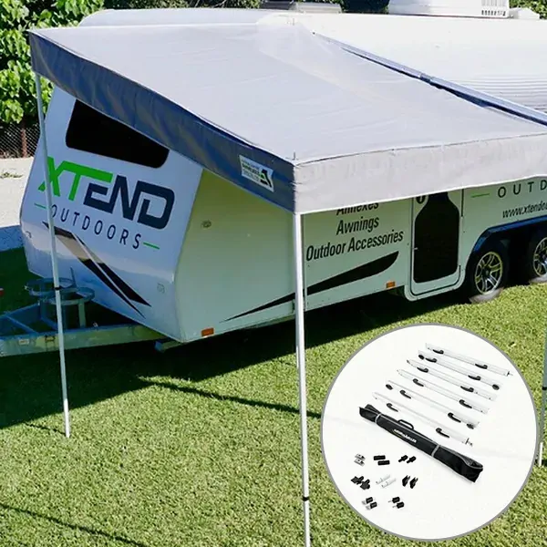 Xtend Medium BBQ Porch with White Anti-Flap Kit (AFK) Pro+ Bundle, 1 Year Warranty. The Xtend BBQ Porch and Aussie Traveller Anti Flap bundle is the ultimate solution to increasing your outdoor leisure space to be the envy of the caravan park. The Anti Flap Kit is the number one key accessory to outdoor living spaces, it adds strength and stability and fits perfectly with the Xtend BBQ Porch. The porch provides the perfect protection to your slide out BBQ in tunnel boots or to give you extended shade for your large family.